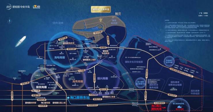 碧桂园中央半岛位于海南省海口市新埠岛北端,北望琼州海峡,三面环江,一面临海,有丰富的江、海、湾景观资源。项目整盘规划,潜心打造七大生态都市系统,共计开发44个苑区(部分规划中),截止2024年已交付18个苑区,交付逾8000户房屋。“拾贝”销售中心及“拾贝”公园,为海口热门打卡目的地。