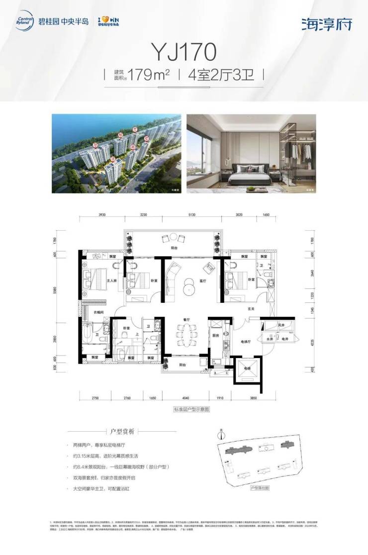 进阶奢适宽居大宅,舒享户户双阳台,约3.15米层高(部分户型),YJ170/260奢配双海景套房(部分楼层),视野通透开阔,悉数收藏每一幕与家人共度的海居日常。