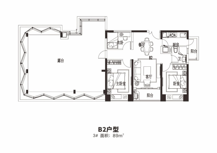 户型特点:户型方正,南北通透,楼间距较大,采光通风效果好。客厅连接景观阳台,可将小区园林景观或周边城市景色尽收眼底。主卧带有大型弧形飘窗或独立阳台,增加了室内空间的延展性和采光面。部分户型还带有入户花园,提升了居住的品质感和私密性。