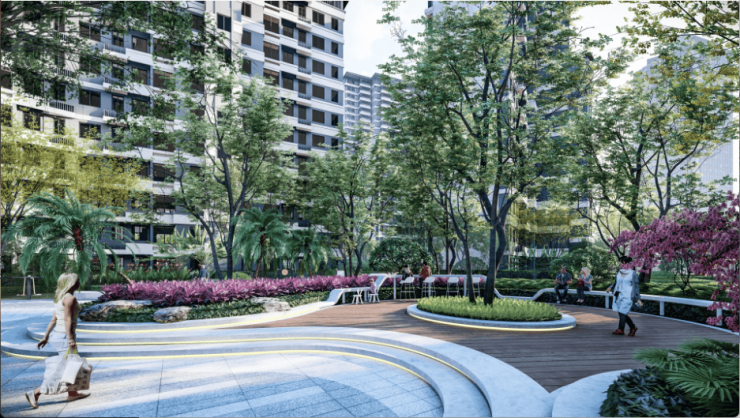 设置景观休闲廊架、林下休憩空间、康体步道、长者趣谈空间、林荫活力空间等,满足邻里间的休闲娱乐生活。