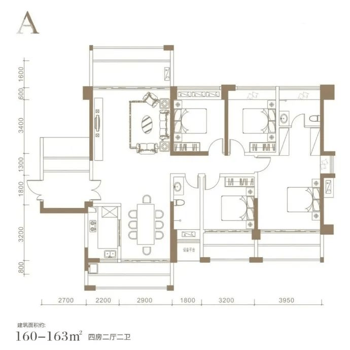 户型种类:有 112-116㎡、142-145㎡的三房,以及 160-163㎡的四房。