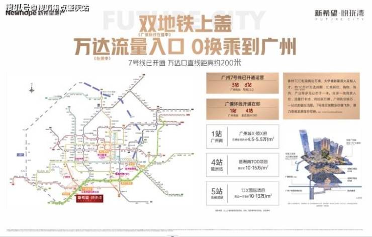 直线距离约400米广州7号线(已开通)直连番禺万博、广州科学城、大学城;