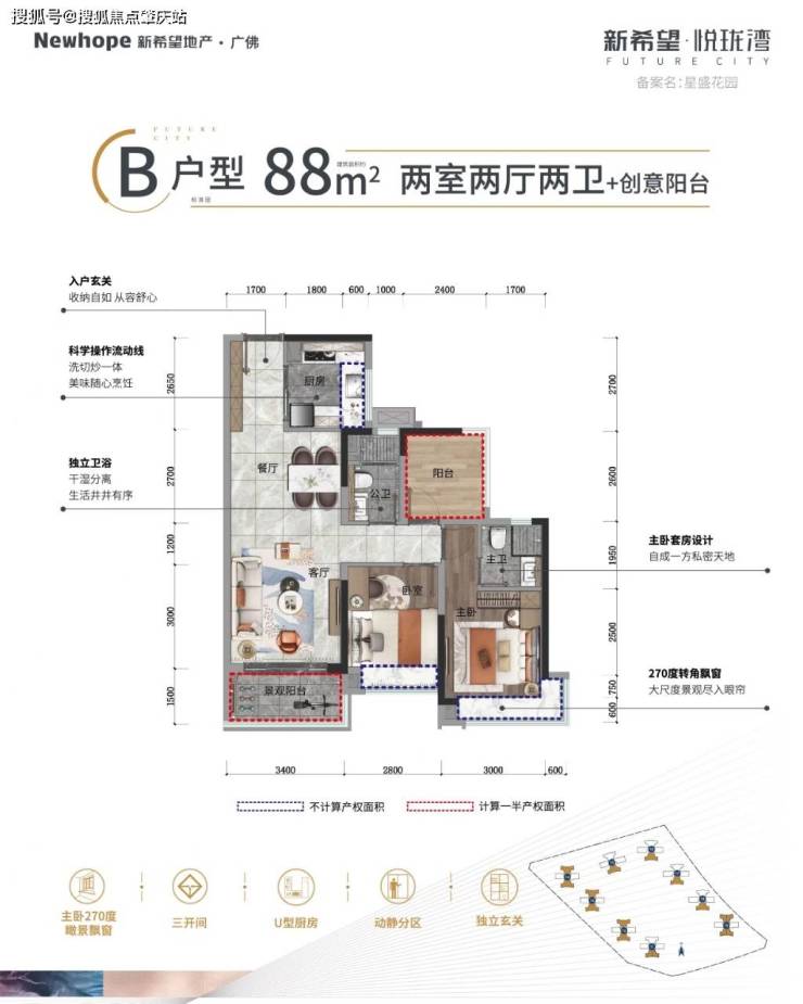 片区没有低于90方的南向3房,新希望悦珑湾有。