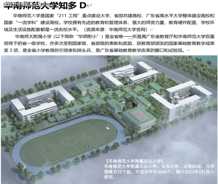 华南师范大学附属乐从小学:公办小学,占地88亩,办学规模为72个班,可提供学位3240个。(已开学)