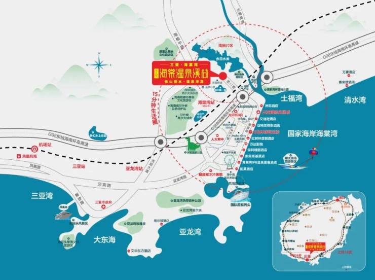 距三亚市中心及凤凰机场45公里 约45分钟车程