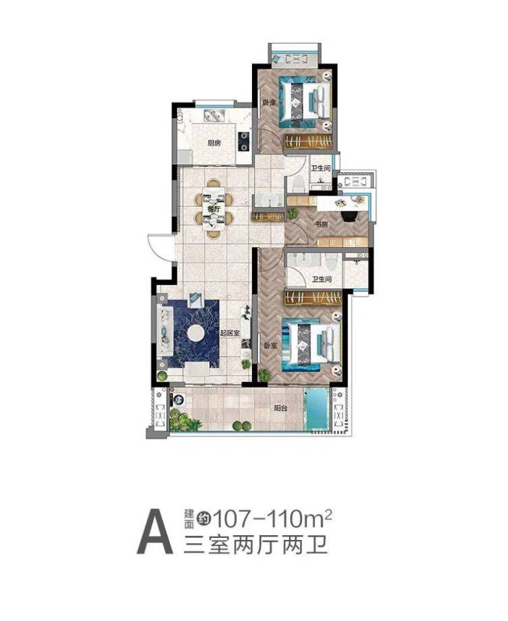 A户型亮点:精致户型,通透明亮,宽景阳台规划温泉泡池