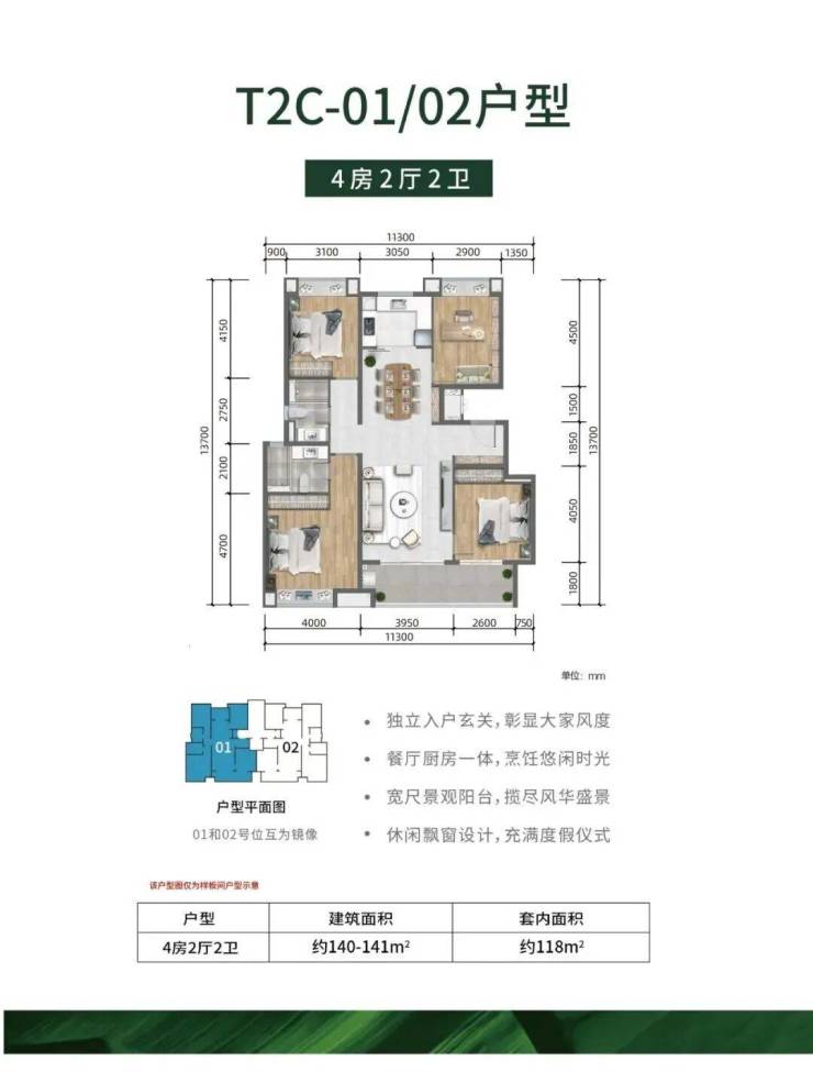 →户型面积段:约110-141㎡(3房/4房)