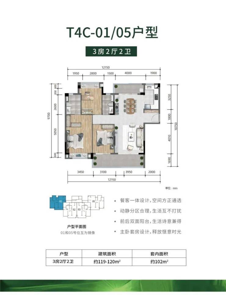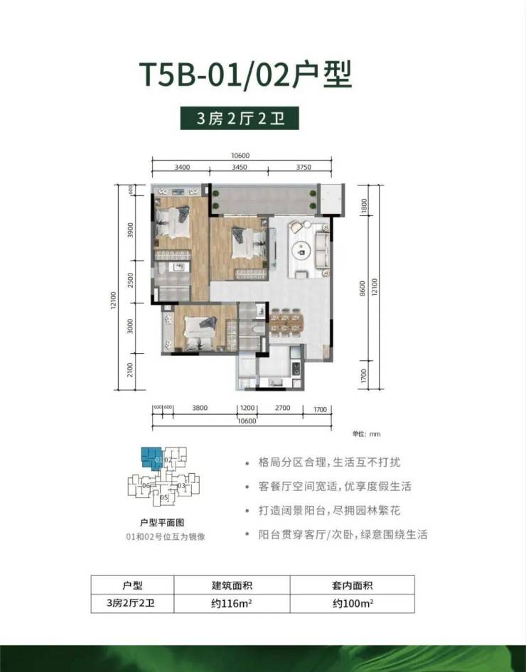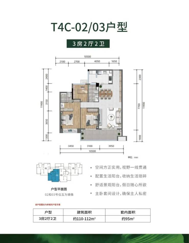 -全明户型,方正实用、公摊低,大主卧、超大景观阳台设计