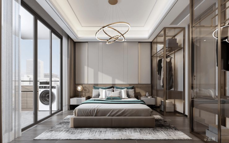 套房式主卧设计,自带独立卫浴、衣帽间等功能分区,设计舒适观景飘窗,让夕阳与晨曦在枕间悄然停落。