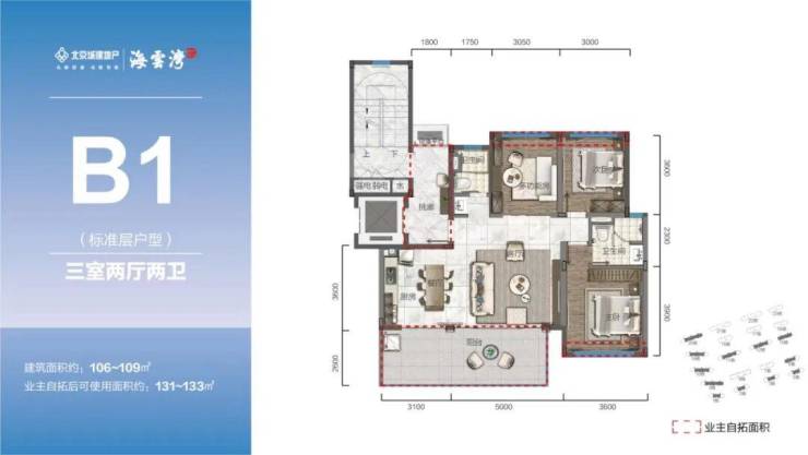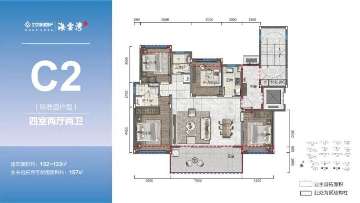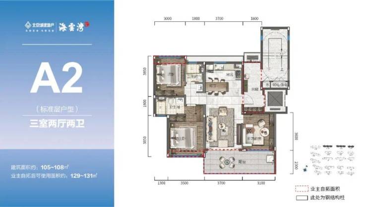 主力户型:107-119㎡三房、132㎡四房