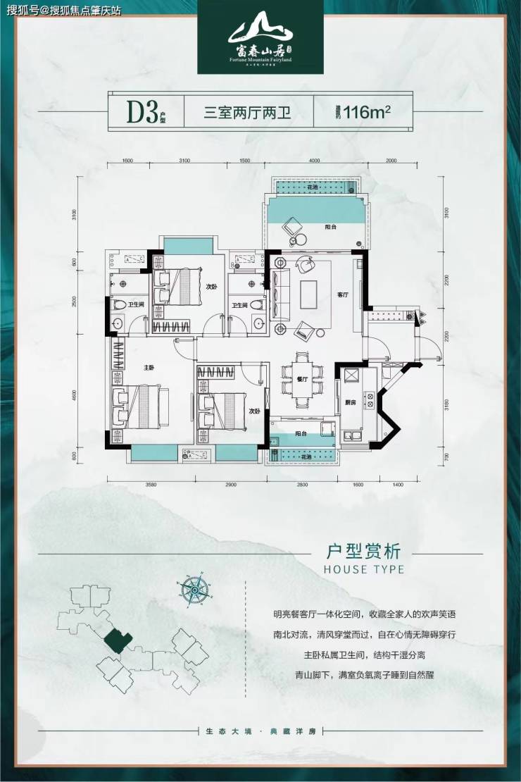 建面约105-116 m² 南北通透三房