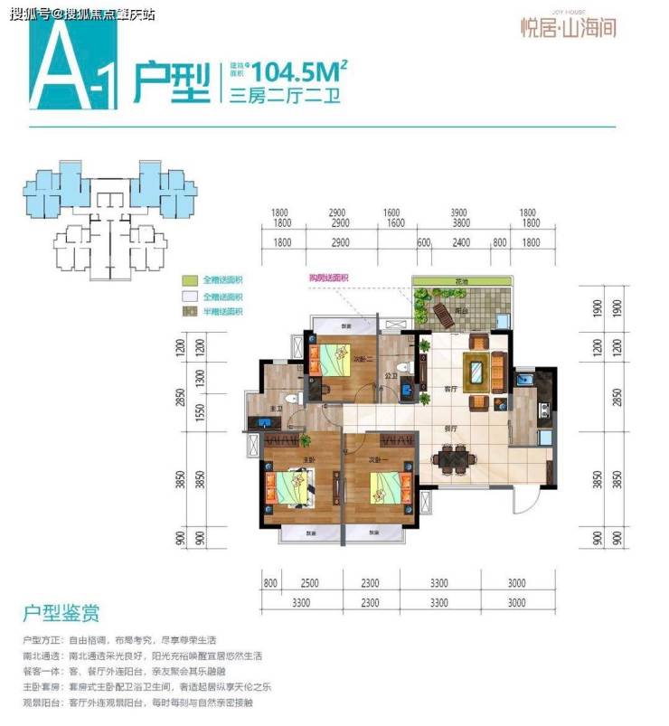 在售户型面积:约101㎡~106㎡