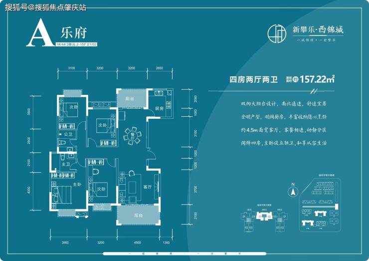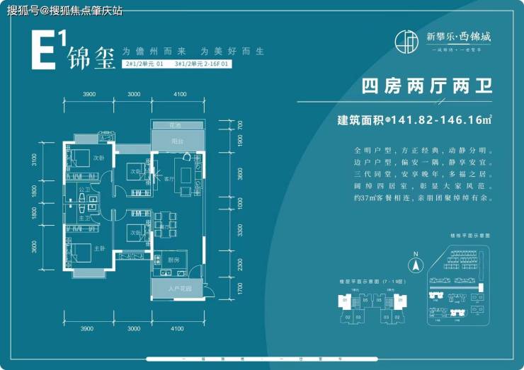 2#住宅楼户型为119㎡-146㎡三至四房。