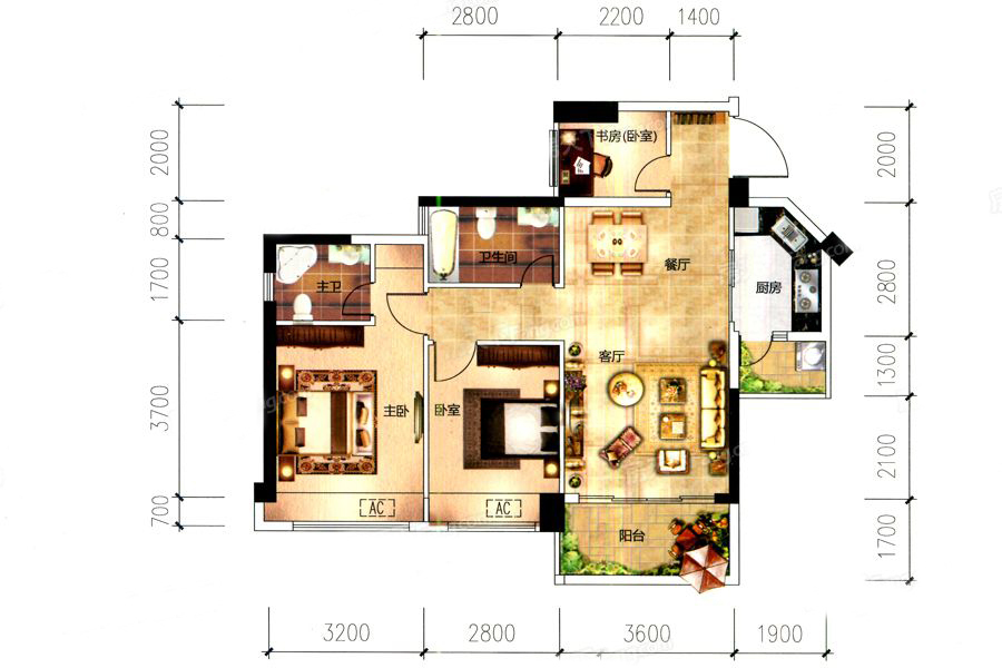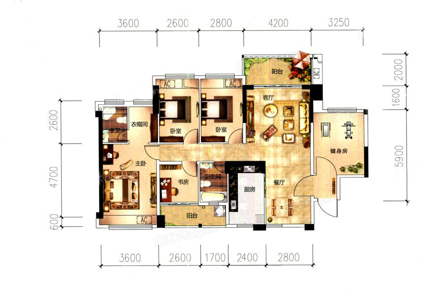 二居室(1)、 三居室(2)、 五居室(1)