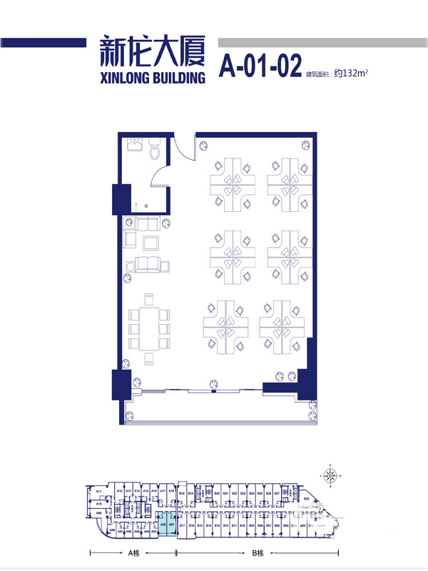 平层办公户型-1室1厅1卫1厨建筑面积70.00平米