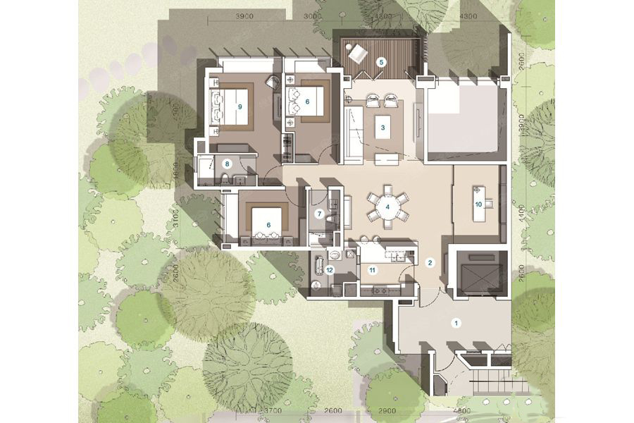 蔚蓝阁1#E户型-4室2厅3卫1厨建筑面积210.00平米