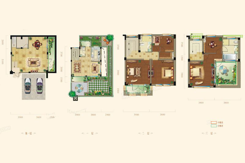 别墅A1户型-3室3厅4卫1厨建筑面积276.00平米