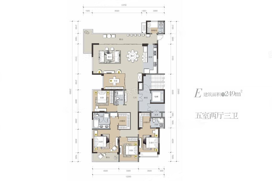 11#E户型-5室2厅3卫1厨建筑面积249.00平米