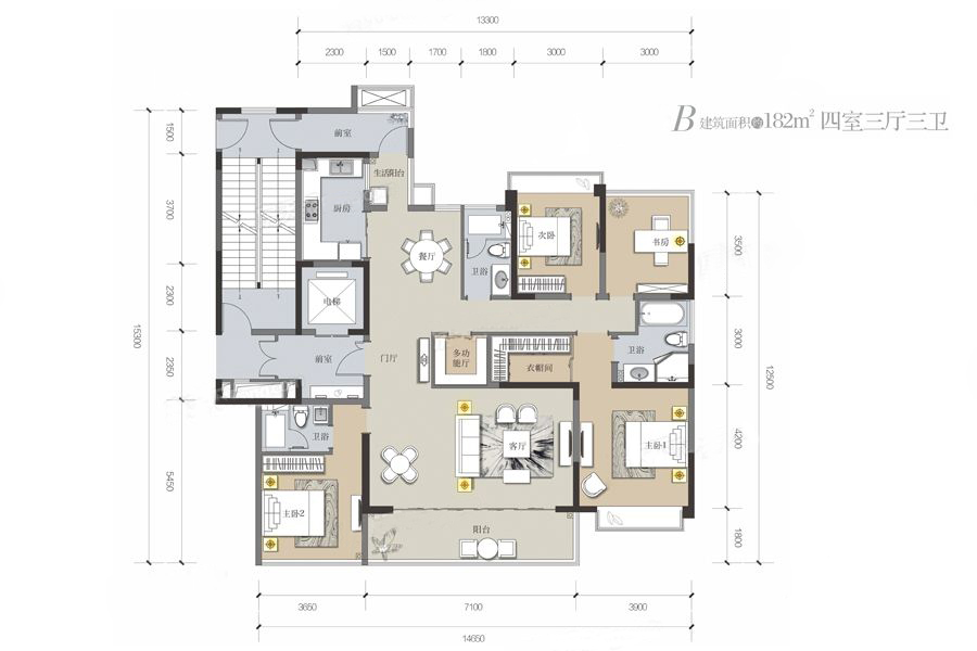 6#B户型-4室3厅3卫1厨建筑面积182.00平米