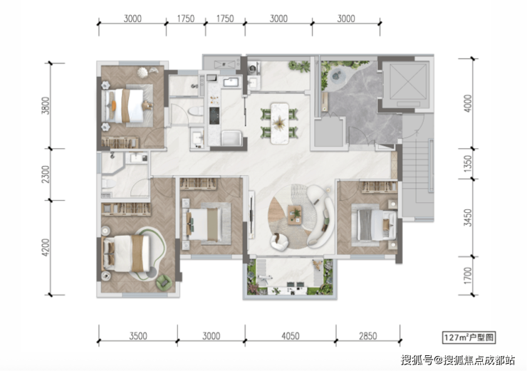 户型区间:108㎡(套三双卫)/127㎡(套四双卫)