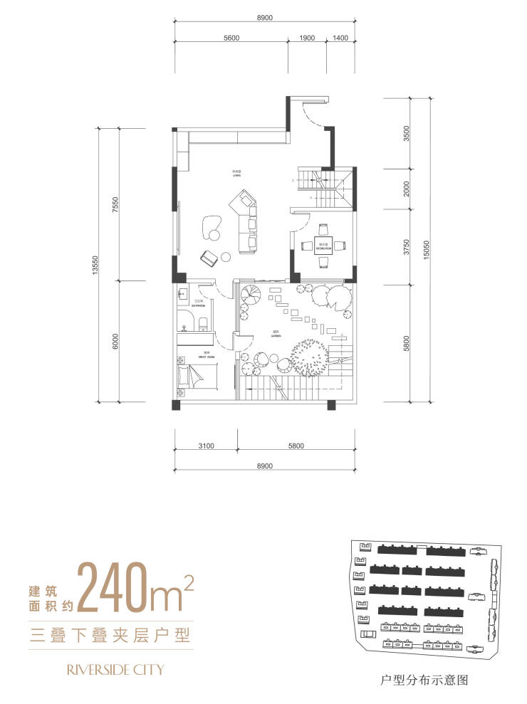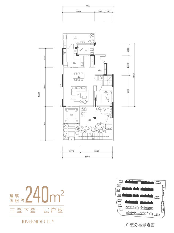 下叠:240平(花园约60平左右➕夹层)