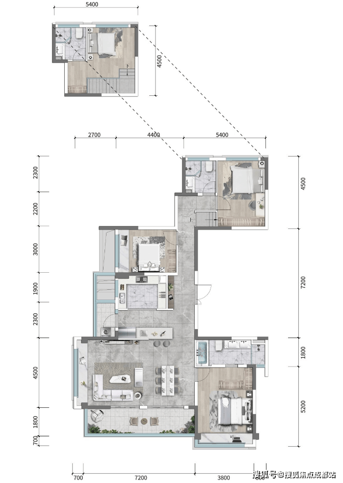 作为高新区唯一高端改善项目,提供147-200㎡跃层产品,实际使用面积达177-450㎡
