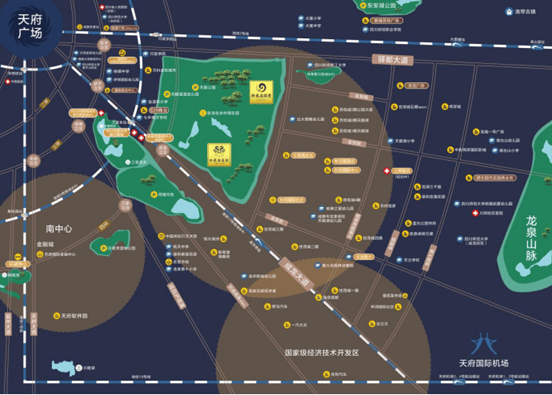 2、项目5公里内,伊藤洋华堂绿地概念店、成都杉杉奥特莱斯广场和龙湖·驿都天街环伺。
