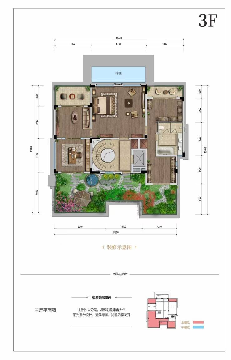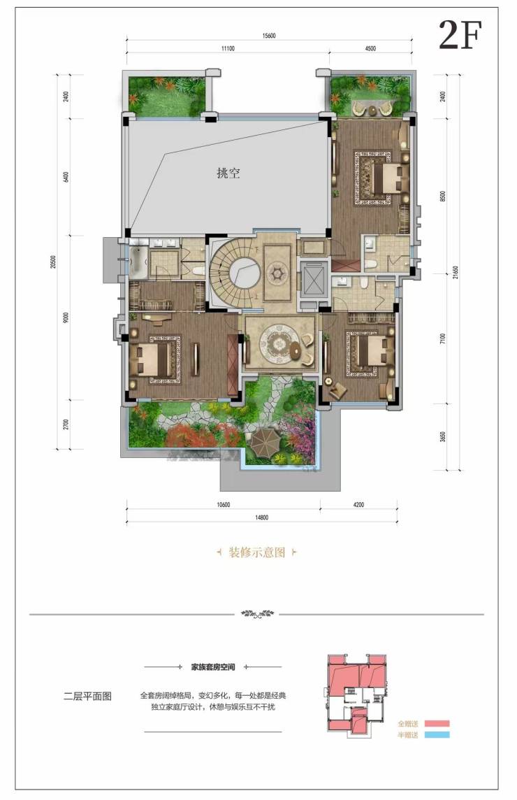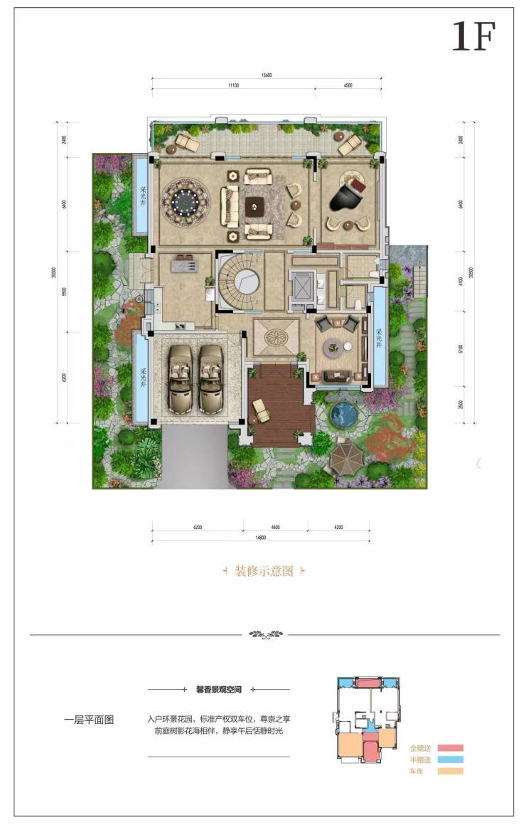 户型面积:约440㎡,赠送后套内实得约1200㎡