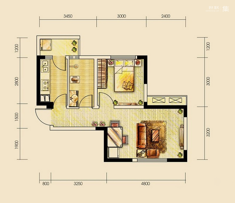 一居室(1)、 二居室(1)、 三居室(3)