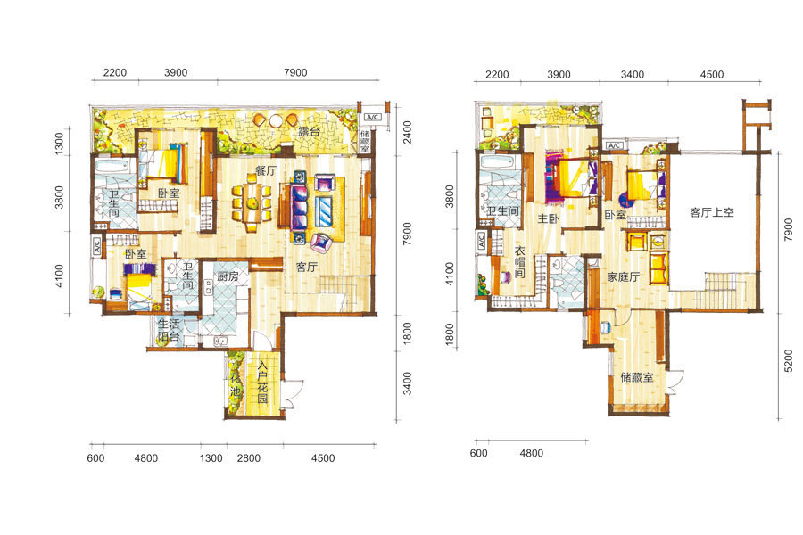 三居室(2)、 四居室(2)、 五居室(1)