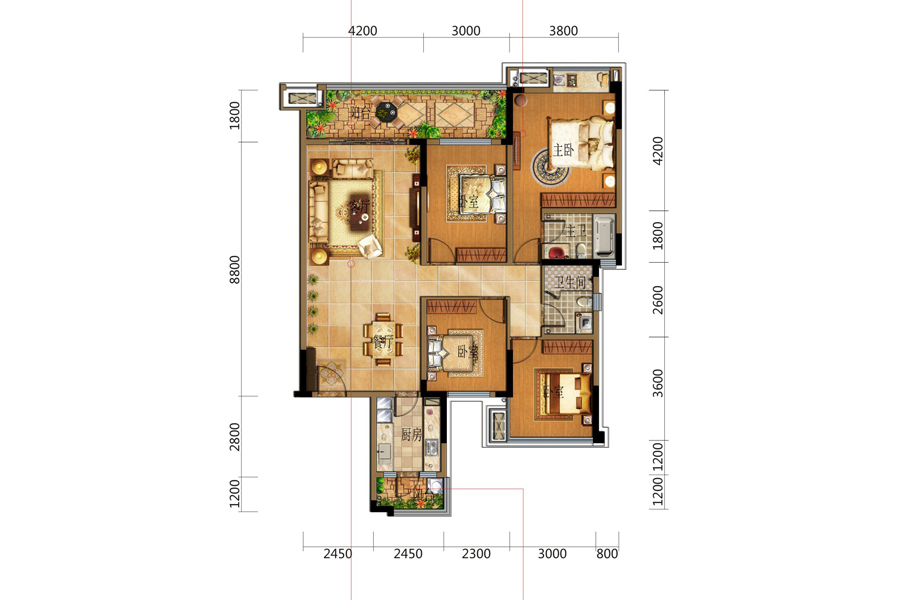 二居室(1)、 三居室(3)、 四居室(1)