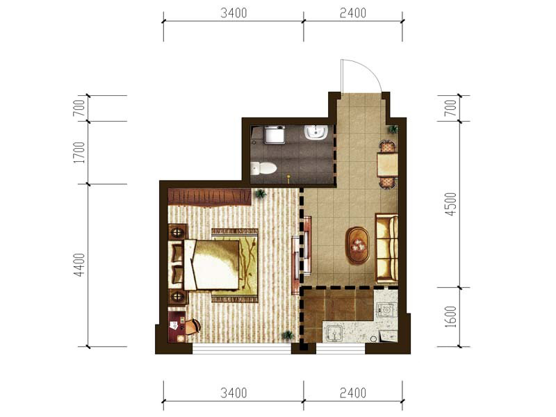 F户型-1室1厅1卫1厨建筑面积40.76平米