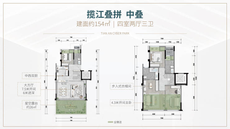 建面约154平中叠