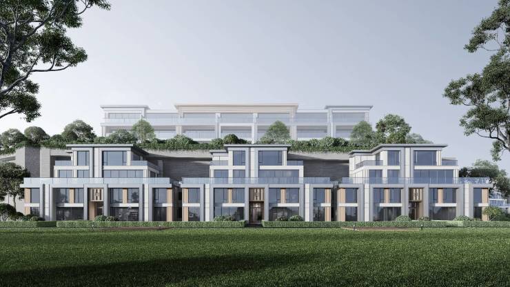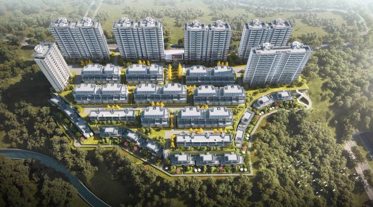共21栋(小高层6栋,别墅15栋),A组团11栋,B组团10栋