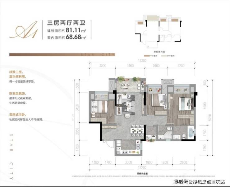 建面约81-91平,三房两厅双卫0浪费空间神户型