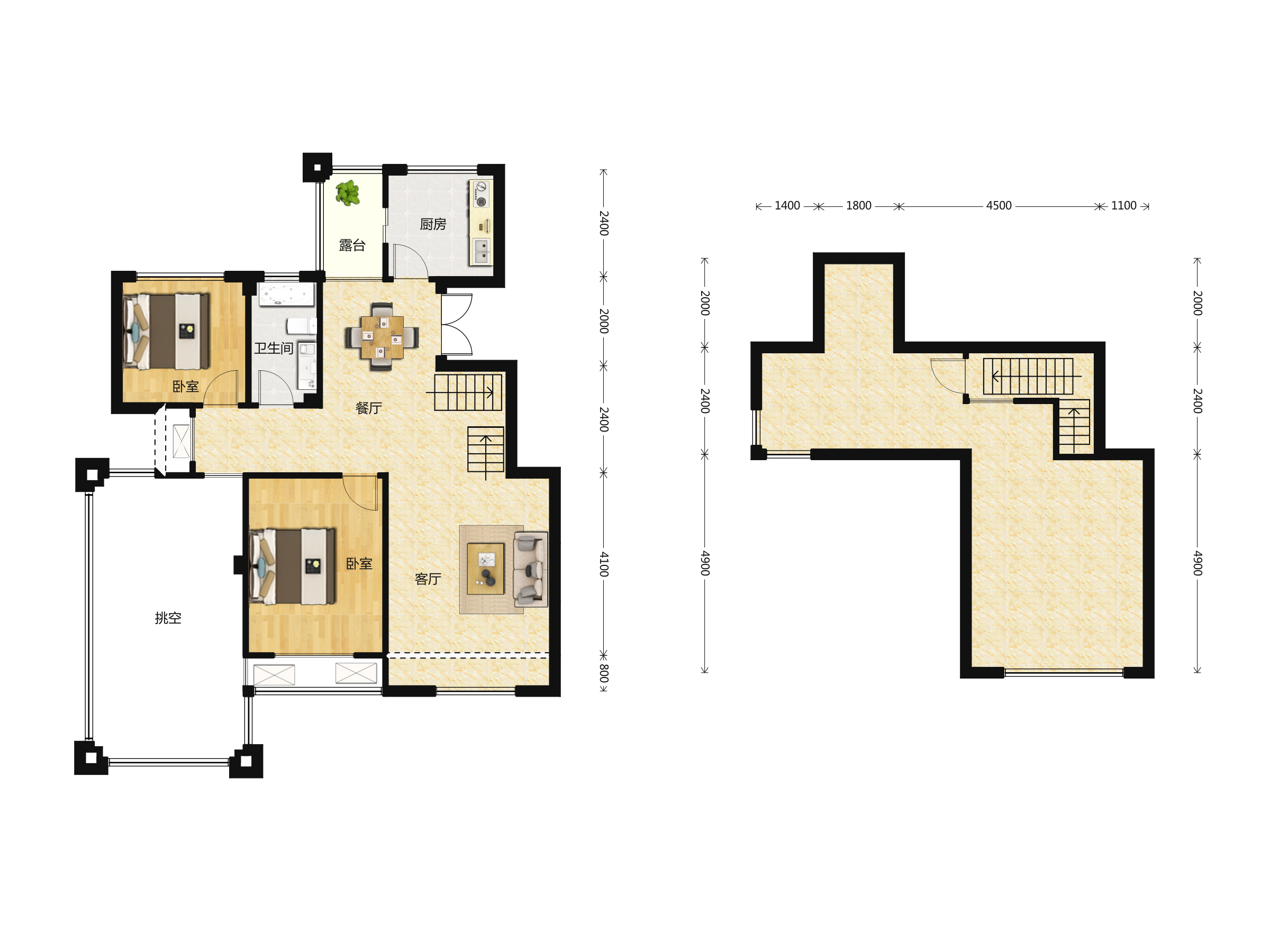 二居室(2)、 四居室(1)
