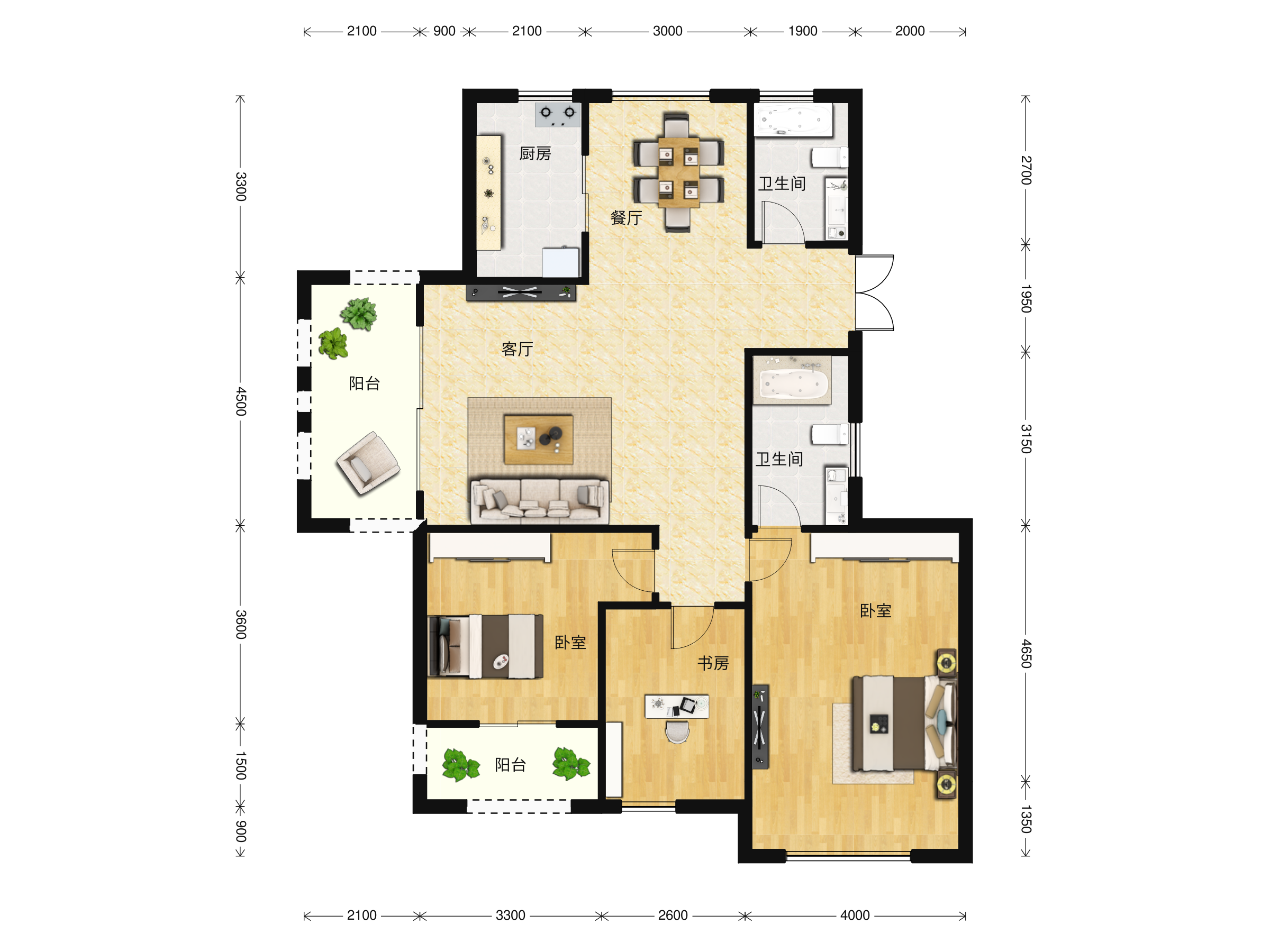 三居室(2)、 四居室(1)