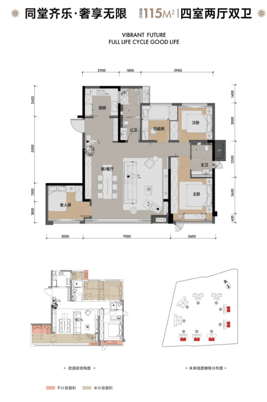 115平户型;毛坯,2T4户。
