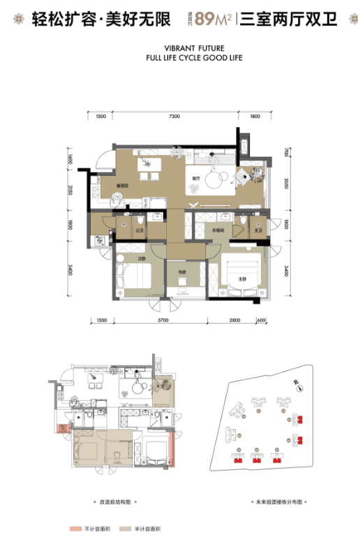 89平户型; 毛坯,2T4户。