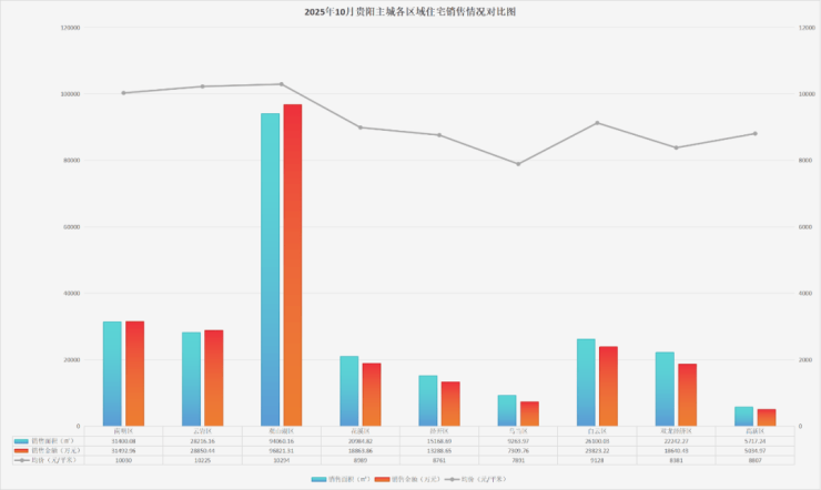 接下来,看看贵阳主城各区(不含综保区)在10月份的住宅销售情况。