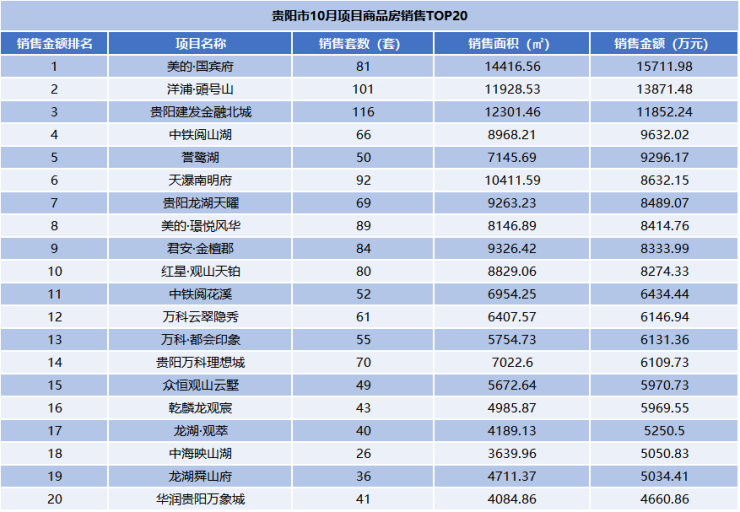 贵阳主城楼市月报|10月美的国宾府成销冠,市场继续维稳