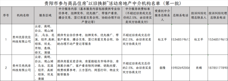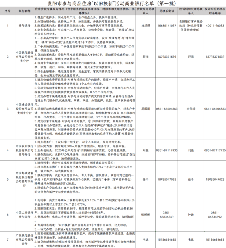 2026年1月16日,贵阳市住建局公示了参与商品住房“以旧换新”房地产开发企业及项目、商业银行、房地产中介机构名单(第一批)。
