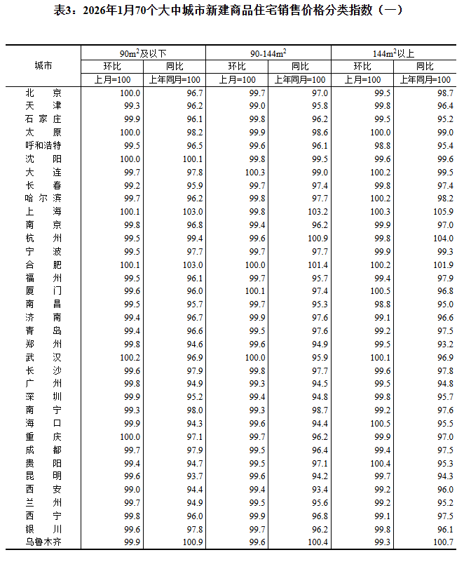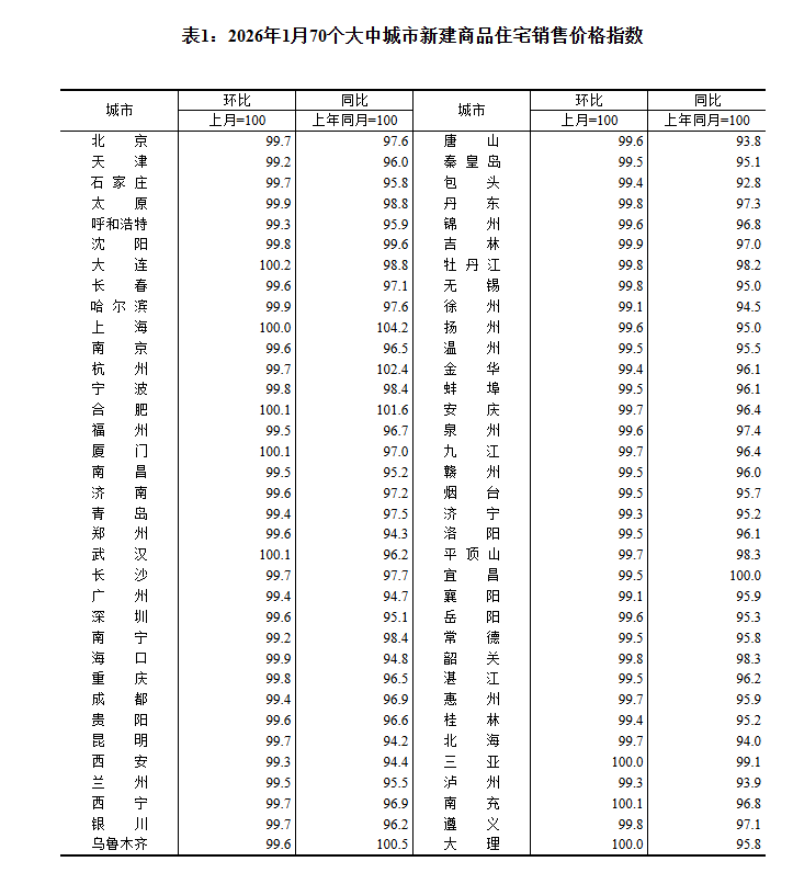 ——国家统计局城市司首席统计师王中华解读2026年1月份商品住宅销售价格变动情况统计数据
