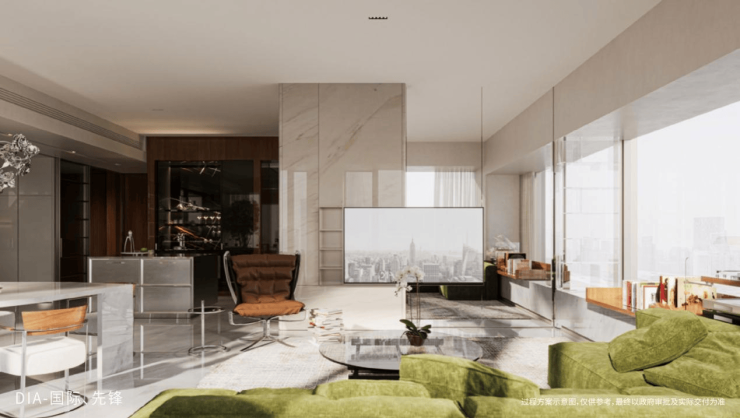 在城市中心大平层业态类目,华润置地顶序作品拒绝标准化复制,始终深度解构每宗土地的文化肌理与在地禀赋,以上海澐启滨江为例,从上海船帆文化中萃取时代表达,以“风帆群像”精神建筑塑造滨江塔冠地标;建筑立面深挖Art Deco文化精粹并予以当代转译,远观彰显当代美学张力,近赏沉淀经典风华记忆,实现文化价值与居住美学的共生。