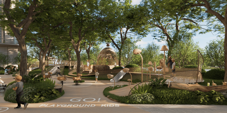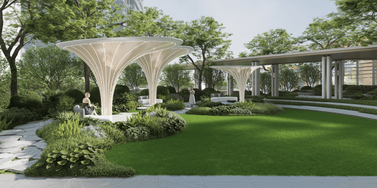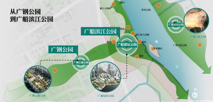 · 园城一体:约18万㎡滨水公园与广钢遗址公园串联,形成约60万㎡的“T型绿袖”,构建都市人向往的微度假场景,升级了公园生活的居住价值。