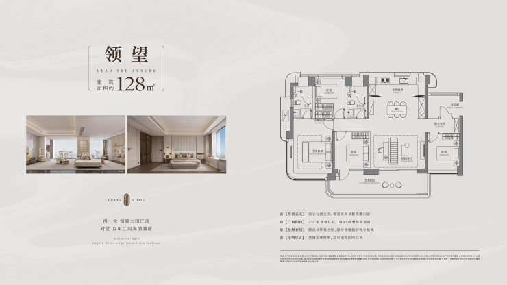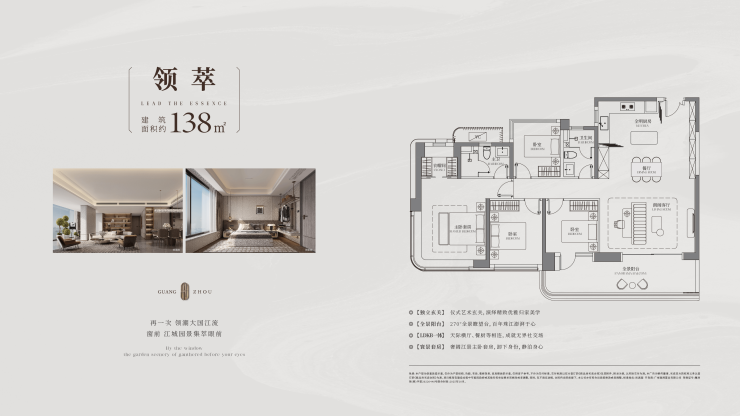 户型在设计上精心考量瞰江视野,约138㎡以上户型望江率达90%,大户型望江率达100%。户户270°转角窗,全广角瞰江视野,目之所及,皆是江流奔涌。