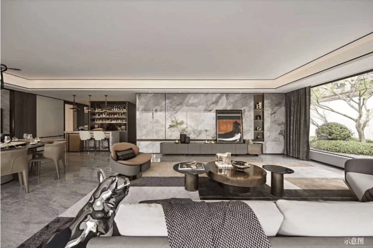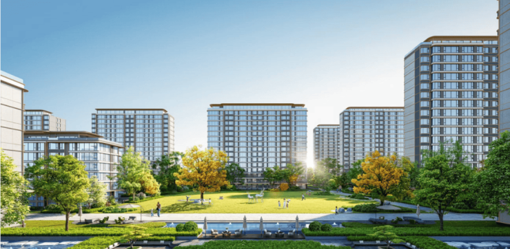 在设计理念上,绿城·紫璟府融合现代建筑美学与东方园林意境,打造“隐于城,归于园”的诗意生活场景。建筑外立面采用高级灰真石漆与香槟金铝板线条,简约大气又不失精致;屋顶采用坡顶设计,呼应传统建筑美学。社区内部则通过多层次绿化、水景庭院与步行系统,构建出“园中有宅,宅中有园”的格局。从土地研判到产品落地,绿城团队全程把控,力求每一寸空间都经得起时间考验。