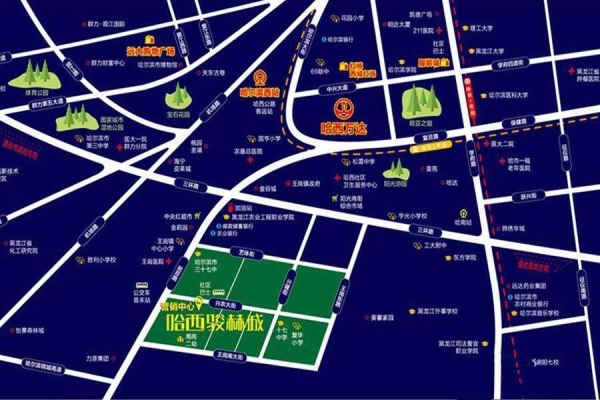 黑龙江省哈尔滨市南岗区哈西哈双路与兴农大街交口处(距离哈西万达6公里)