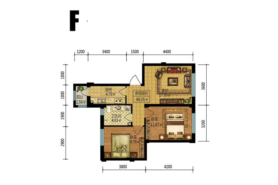 F户型-2室1厅1卫1厨建筑面积67.75平米
