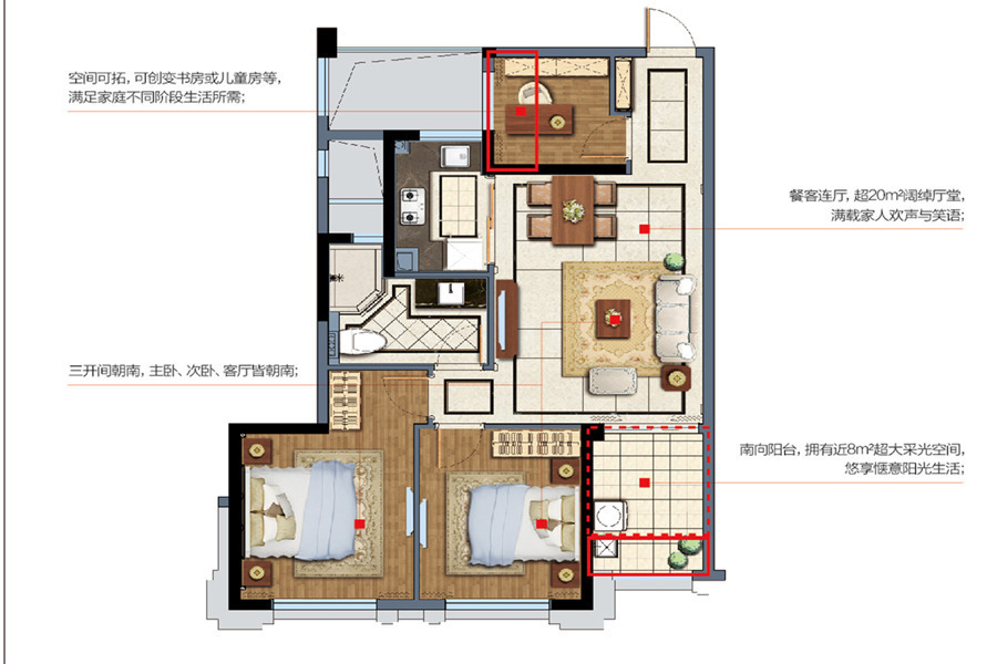 各个空间户型方正,后期空间利用率高;全明通透户型,居住舒适度较高,整个空间采光充足,利于后期居住;整体空间布局合理,能够保证动静分离和居室通风,方便使用;卧室厨卫等各个功能区的面积大小都比较合理,居住体验便利,整体舒适度高;公摊高于15%且低于25%,符合住宅公摊正常范围。